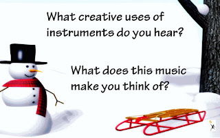 Each week the older classes have a “Listen and Think” to start their lesson. This week’s “Listen and Think” is Leroy Anderson’s Sleigh Ride. I post this flipchart page on the board as students enter class….