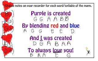 So last week I posted a composition lesson for Valentine’s Day. Last Friday was the beginning of my new rotation and I tried the lesson out on my 3rd and 4th grade recorder students. It was a big hit and a huge success! We read the poem, clapped the rhythms, composed pitches to go with the rhythm, and played it – and it was super fun, for me and them!