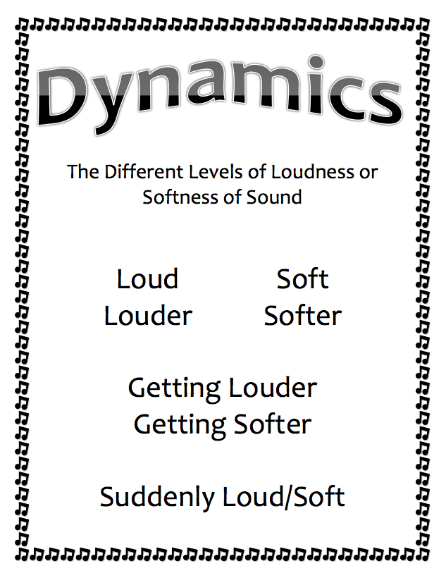 Music word walls are often a challenge because there are many ways to organize musical concepts and music vocabulary. I approach it from a standpoint of organizing the words by concept or subject. So all the tempo words are grouped together on a “Tempo” word wall poster and “Dynamics” words like loud and soft are on another poster. This gives visual separation to the music qualities, especially the expressive qualities, which I have found the young students have trouble with – my little ones confuse loud and soft with high and low all the time. A word wall will help them distinguish the correct vocabulary to describe what they hear or what they want to hear in a piece of music.