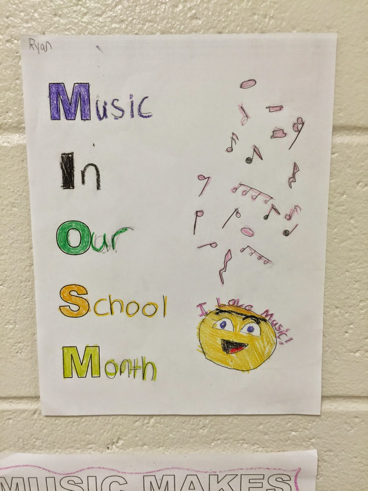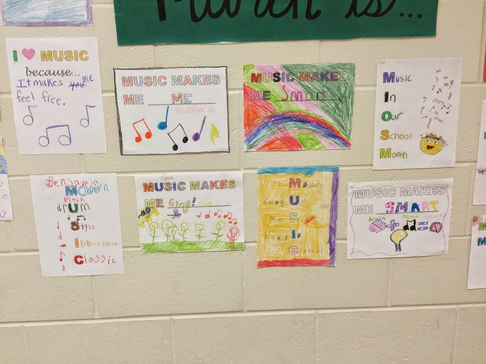 To celebrate MIOSM here at my school, Clark Creek Elementary STEM Academy in Cherokee County, Georgia, we created our own music advocacy posters to hang in the main hallway of our school. Here are some pictures of the installation: