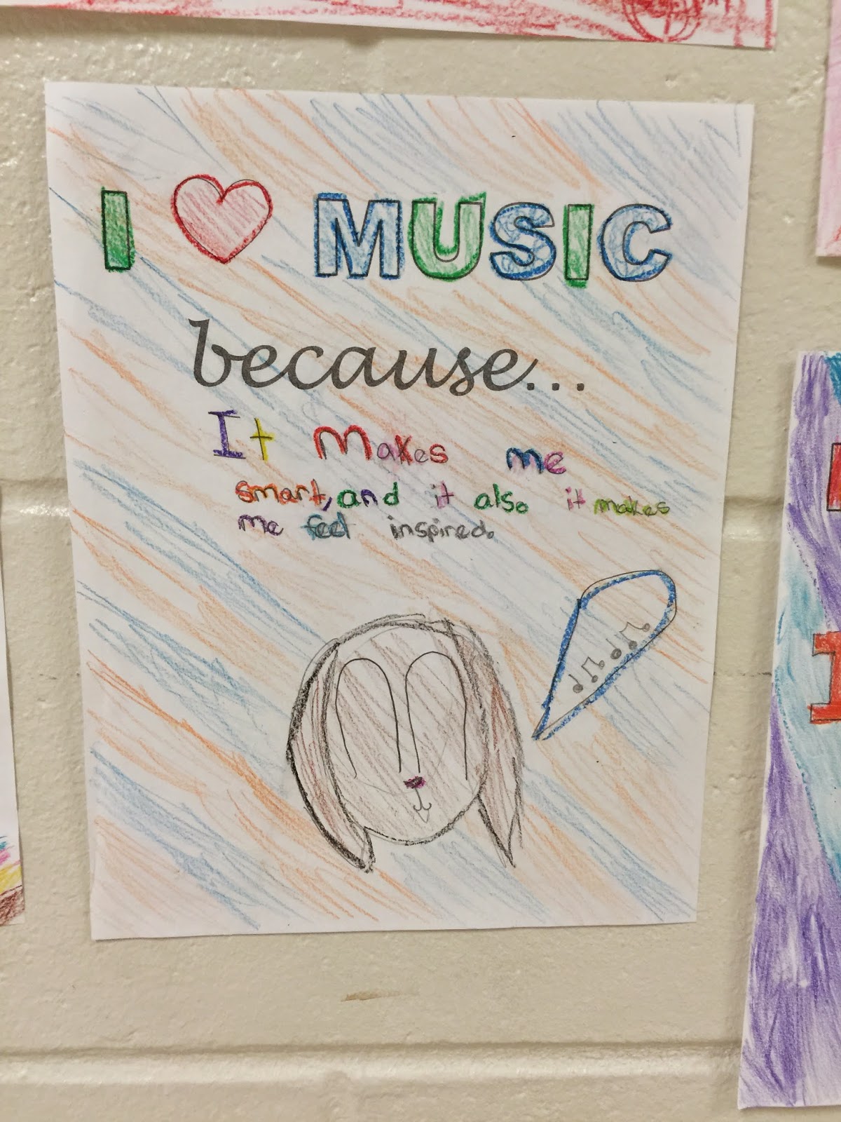 - A template that says “I {heart} music because….” that students can design, color, and illustrate