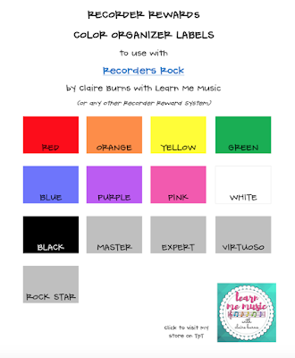 My students are moving right along in the method book this spring semester. Being at a new school this year, I knew I needed to get my Recorder Reward system organized and prepared for when they start earning the leveled songs!